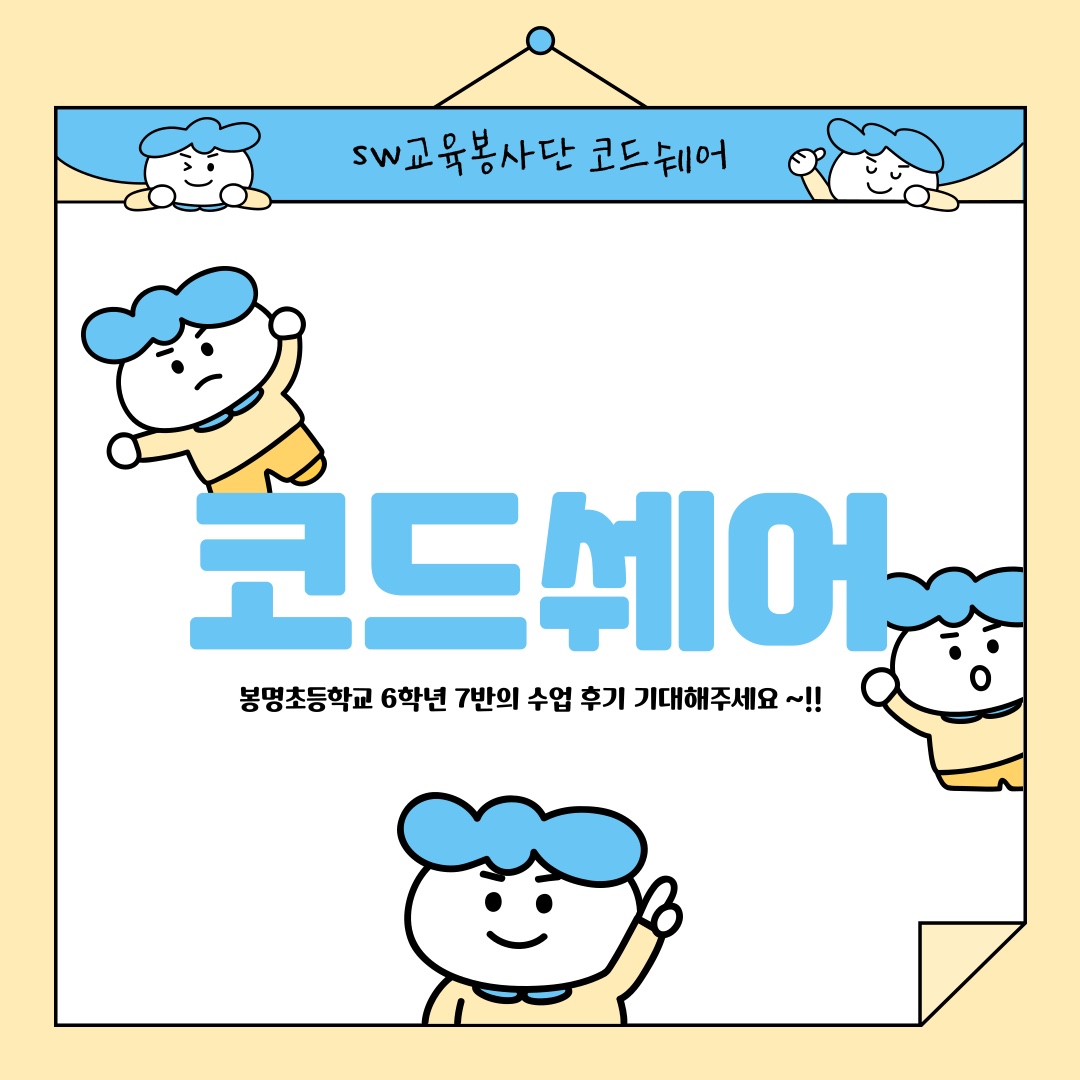 | [코드클럽 SW봉사단] 2024 하반기 코드쉐어 6학년 6반 1~4차시 수업 후기 (1) | 2024.11.30 |