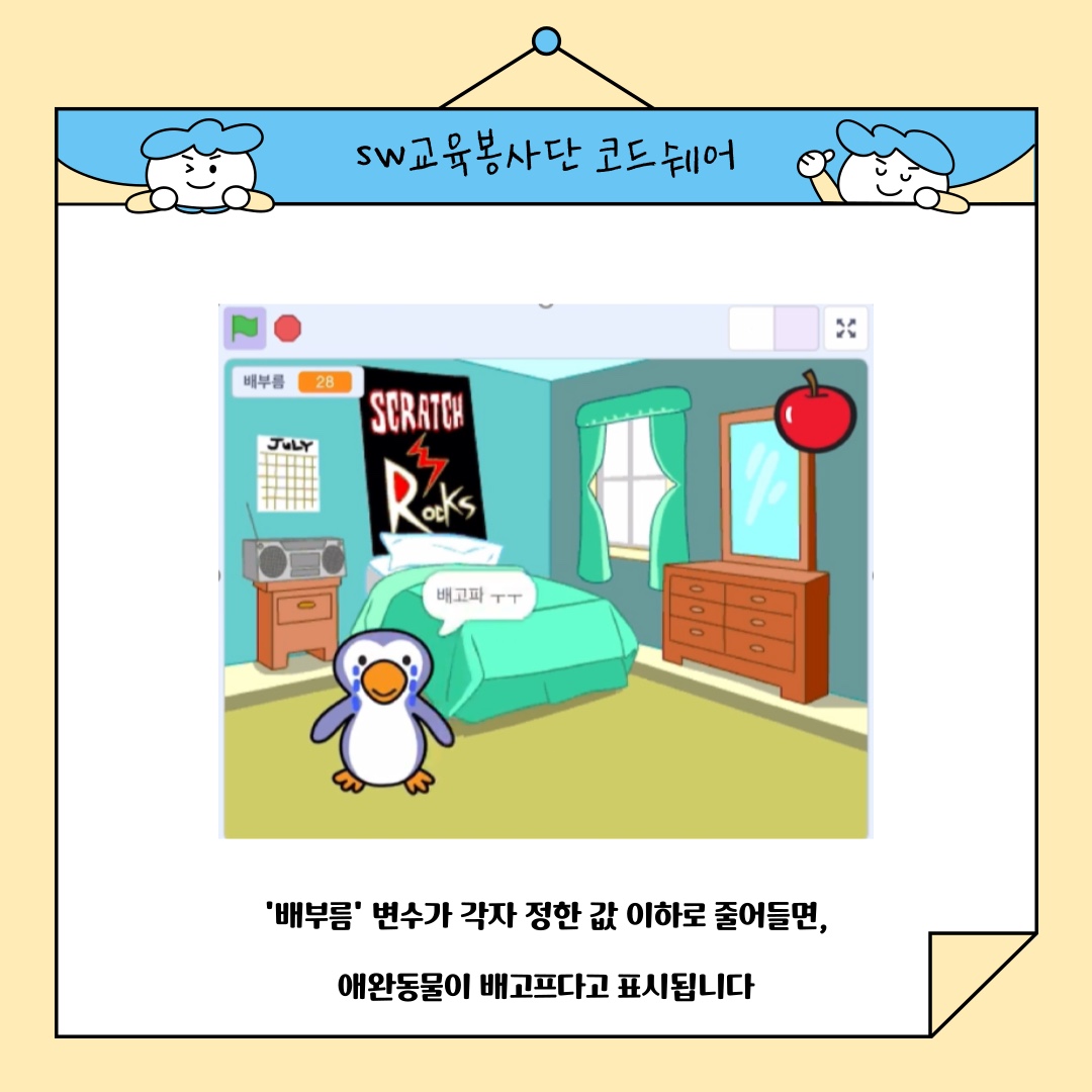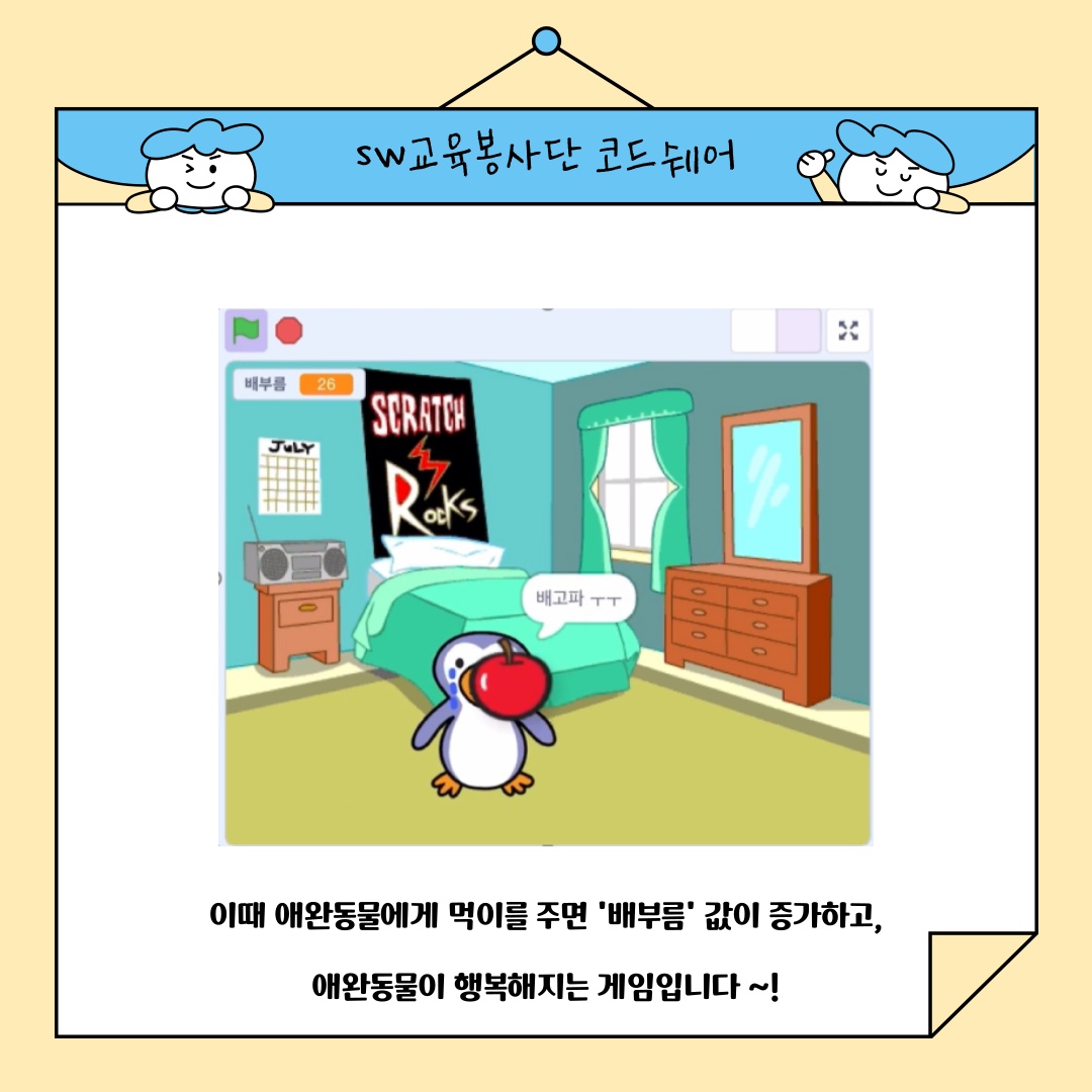 | [코드클럽 SW봉사단] 2024 하반기 코드쉐어 6학년 5반 1~4차시 수업 후기 (0) | 2024.12.01 |